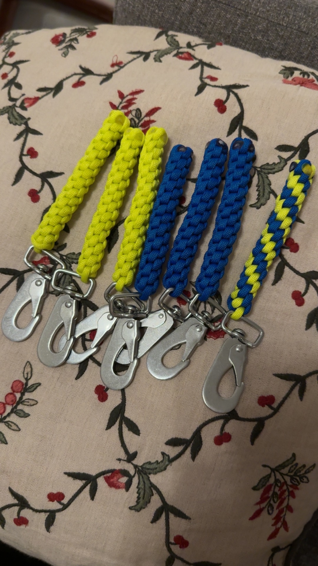 løsbitt kan lages i mange farger (paracord), og lages i valgfri lengde - med eller uten krok.