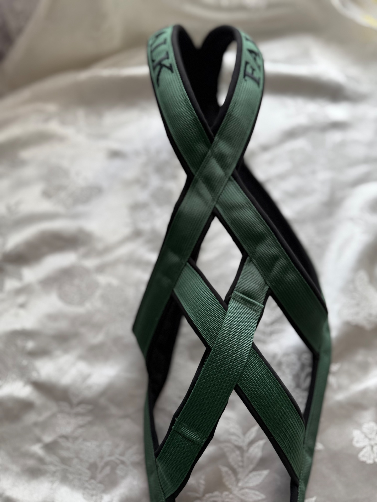 Seler sys i softshell og med 25mm webbing (bånd). Bredden på stropper lages fra ca 3cm og oppover til ca 5cm bredde.