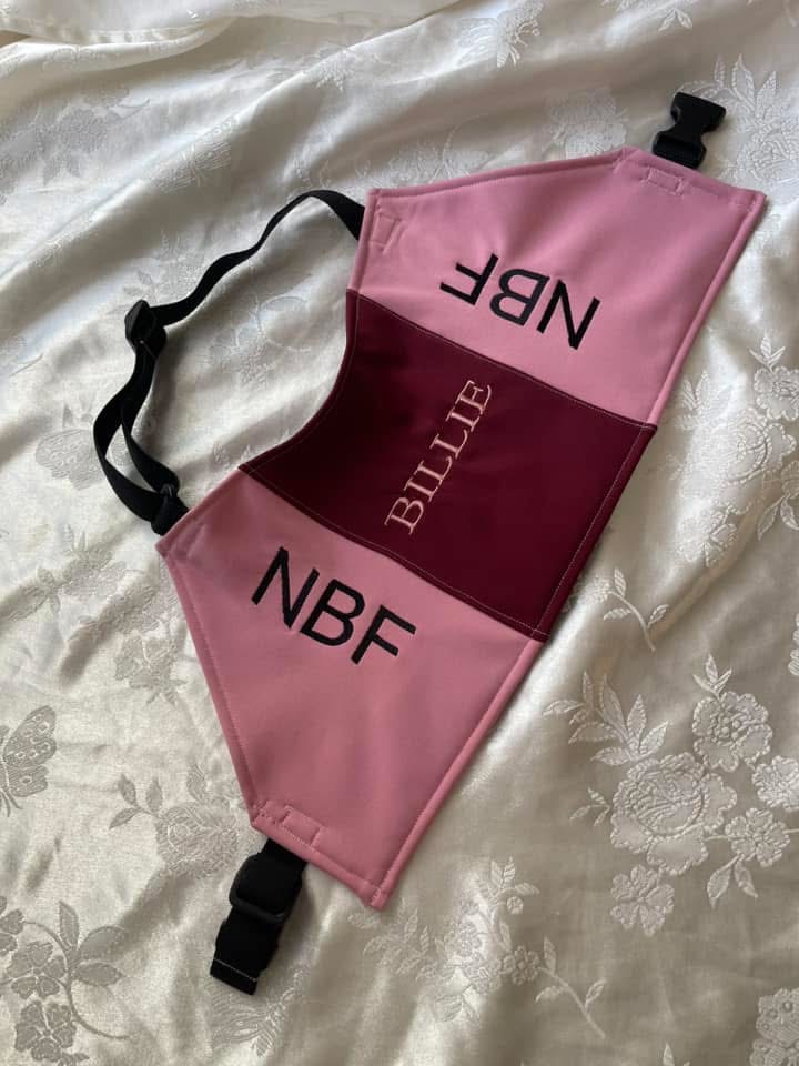 Lapp med brodering (f.eks «elev» for å kunne fjerne): 150 kr tillegg for to